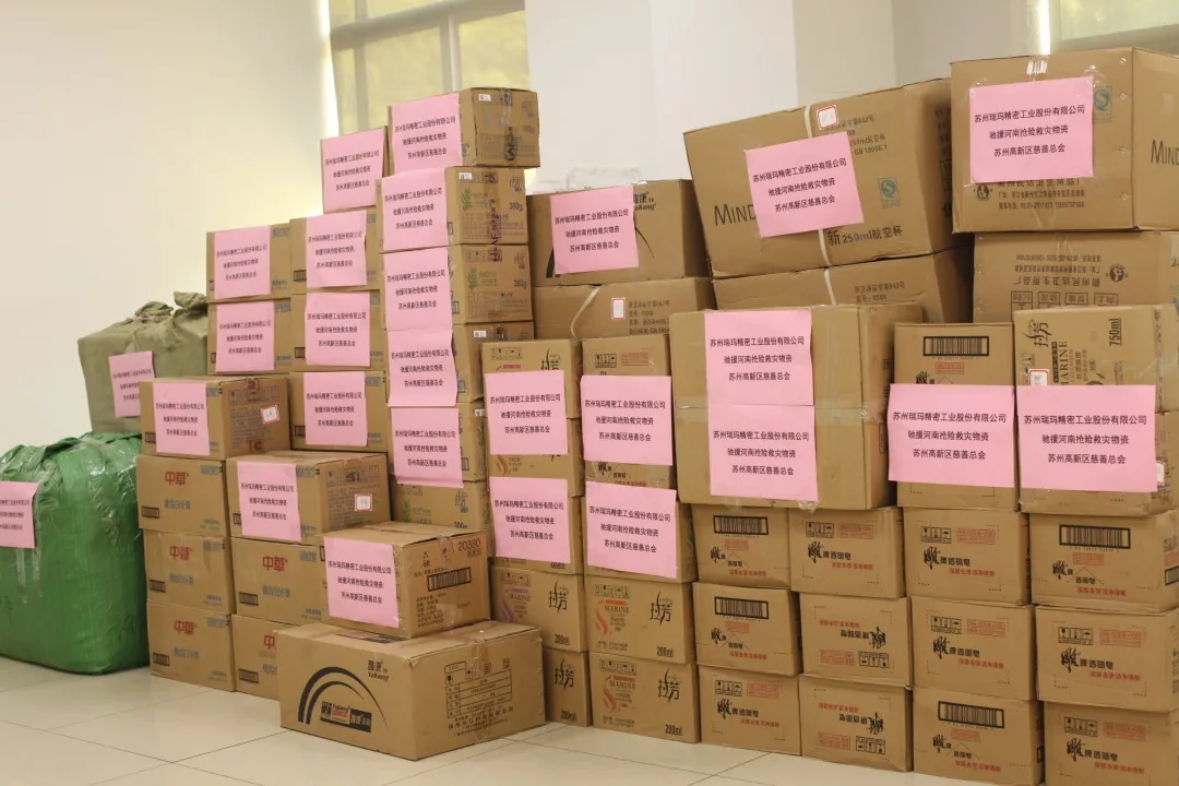 隨著汛情向鄭州周邊的蔓延,新鄉、鞏義、滎陽、鶴壁等多地陸續出現災情,防汛形勢越來越嚴峻。在此危難時刻,瑞瑪精密與高新區慈善基金會取得聯系,主動捐助物資,與河南人民一道投入到危急的抗洪搶險工作中。